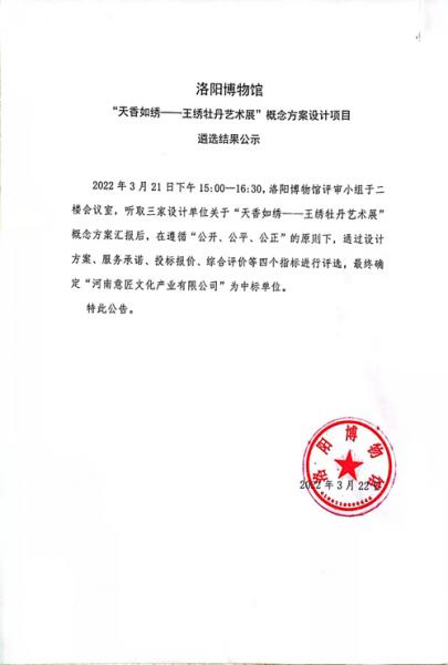 洛阳博物馆“天香如绣——王绣牡丹艺术展”概念方案设计项目遴选结果公示