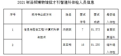 2021年洛阳市文物局下属事业单位洛阳博物馆招才引智递补人员体检结果及考察相关事宜的通知