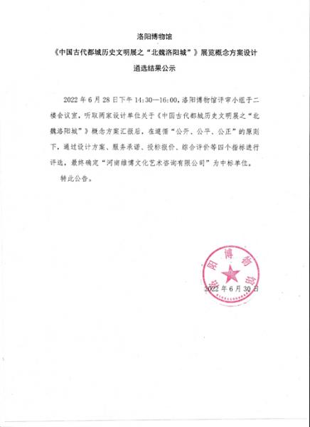 洛阳博物馆《中国古代都城历史文明展之“北魏洛阳城”》展览概念方案设计遴选结果公示