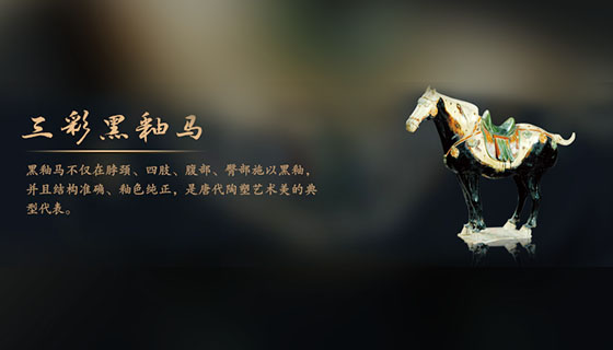 黑釉马不仅在脖颈/四肢/腹部/臀部施以黑釉,釉色纯正,是唐代陶塑艺术美的典型代表。