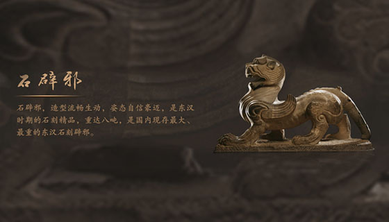 石辟邪,造型流畅生动,姿态自信豪迈,是东汉时期的石刻精品,重达八吨,是国内现存最大最重的东汉石刻辟邪。