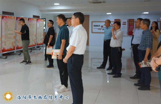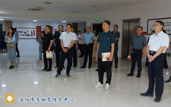 洛阳博物馆讯 2023年9月7日下午,洛阳市直属机关工委副书记王海潮带领洛阳市直机关第二党建协作组成员单位党组织书记及党务干部一行到洛阳博物馆观摩指导“五星”支部创建工作。洛阳市文物局党组成员、副局长张孟曾,洛阳博物馆馆长李文初、副馆长孙海岩陪同观摩。