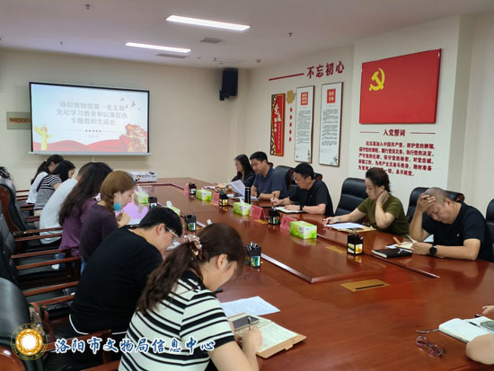 按照《中共洛阳市文物局党组关于在全系统党员中开展党纪学习教育的工作方案》和《洛阳市文物局关于开展典型案例以案促改工作方案》部署要求,7月25日下午,洛阳博物馆第一党支部组织召开党纪学习教育和以案促改专题组织生活会。会议由支部书记孙海岩同志主持,支部全体党员参加。