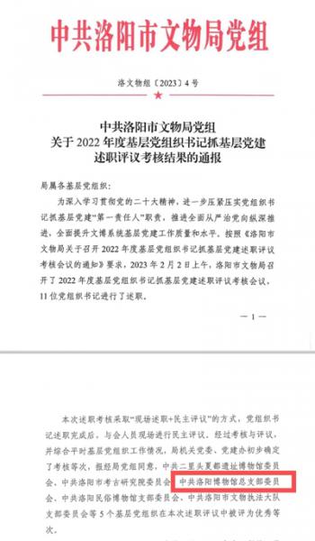 洛阳博物馆2022年度党建述职评议考核荣获“优秀”等次