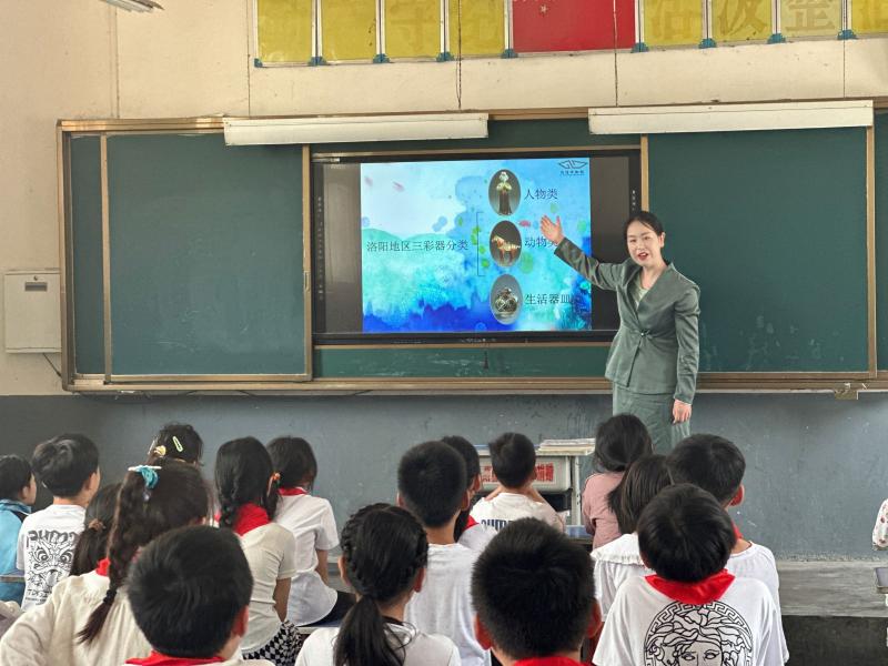 6月6日上午,洛阳博物馆社会教育部研学导师来到宜阳县福昌村小学,为该校学生们开展了一场生动有趣的《幻彩大唐——三彩填色系列课程》。
