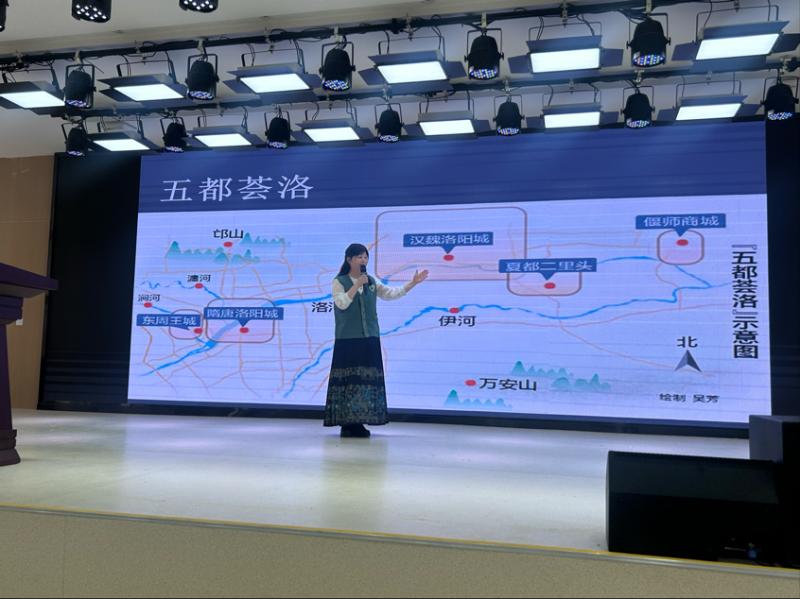 洛阳博物馆优秀志愿者张岳香和戚红音老师,以十三朝古都的时间线为脉络,依托洛阳博物馆中的馆藏文物,讲述河洛文明故事。现场气氛活跃,学生们积极参与互动,通过文物知识问答让孩子们近距离感受河洛文明的魅力,领略中华文明的深厚底蕴,对家乡的历史文化有了更直观的认识。