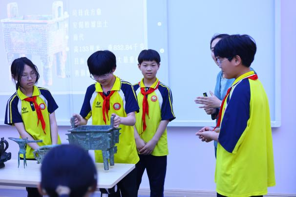 2025年5月30日上午,嵩县闫庄镇中心小学的师生们带着期待走进洛阳博物馆。他们在研学导师的带领下走进展厅与青铜文明对话,通过触摸青铜器仿制件,感受钟鸣鼎食的礼乐文化。这场研学活动不仅拉近了同学们与文物的距离,更在孩子们的心中播下文化传承的种子。