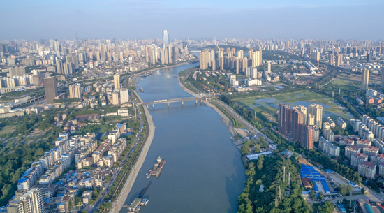 江河纵横,湖港交织,众多大小湖泊镶嵌在大江两侧,如网织开,铺就一个繁华城市。