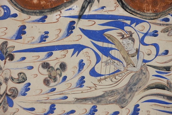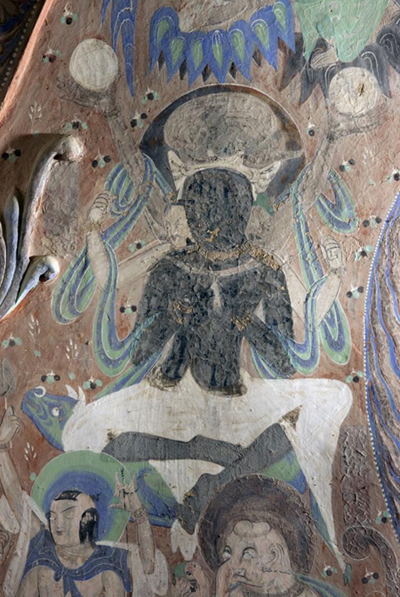 285窟内容十分丰富,既有佛教内容,又画了道家的神灵和天宇,还有印度婆罗门教诸神;既有西方的日月神阿波罗和狄安娜,也有中国的日月神伏羲女娲;既有西方的大力士药叉,又有中国的大力士鸟获;既有印度佛教的飞天,又有道家的羽人,还有中西方不同风格的风神。张元林教授,通过“摩醯首罗天图像——多种风神的复合体”、“日神图像——多种日神符号的复合体”、“月神图像——多种女神特征的复合体”、“‘具装铠’与竖箜篌”、“西域式与‘褒衣博带’、‘秀骨清像’两种人物造型风格并存”五个部分,搜集整理叙利亚、阿富汗等国外地区出土相关文物,结合“地中海文明”、“印度教文明”、“西亚文明”“波斯祆教文明”等具象元素,对285窟风格多样的壁画形象和内容进行多角度的解读,使我们认识到在“丝绸之路”上的敦煌地区不同文化之间的相互交流与融汇的历史。