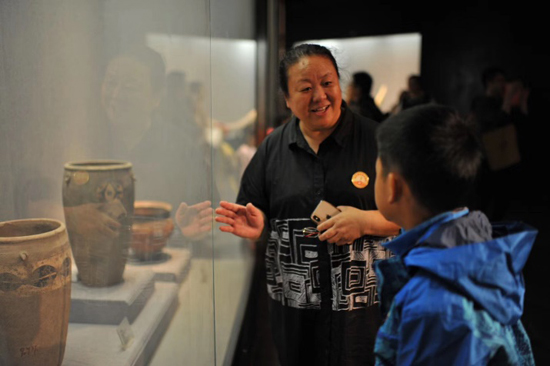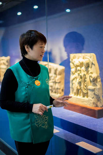 展览的背景、文物背后的历史知识和故事,文物与文物之间,文物与展览间都有着千丝万缕的关系。观众眼中一件件独立的文物,在志愿者眼中却是一整套系统,它们彼此独立又互相联系,共同呈现出一场展览所要表达的文化和内涵。他们不仅注意讲解内容的“精和深”,还根据听众的年龄、职业、地域以及知识结构、理解能力努力做到因人施讲。《故宫牡丹文物展》、《平山郁夫丝绸之路文物展》、《丝路华光——敦煌、云冈、龙门石窟艺术联展》、《吉玉永年西周玉器展》……一个个展览,一场场精彩讲解,不仅拓展了讲解内容,更好地服务听众,而且提升了自身,做到了助人与自助。