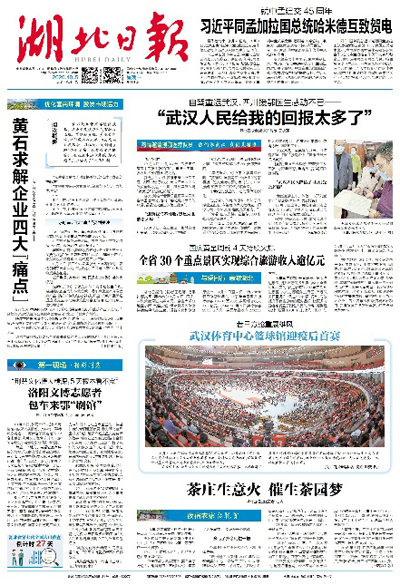 图:《湖北日报》头版刊登洛博志愿者研学(版左下)