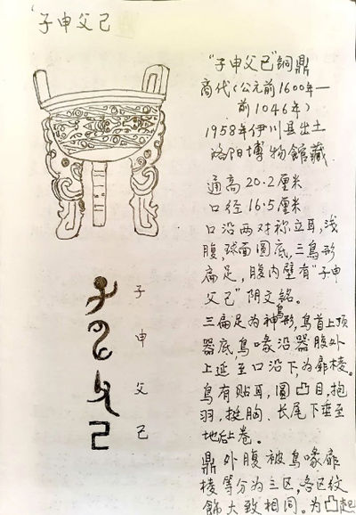 清雅多才的丁燕秋老师,不但在演出中与伯姜、仲姜的扮演者刘琳、祁忻老师产生了深厚的感情,宛若一家人。她还利用业余时间,手绘了“齐侯宝盂”素描版,郭丽红老师将其印制成书签,给每位剧组老师发放留念,也作为周日组和其他博物馆交流的小礼物,很有纪念意义!