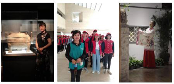 2020年十一期间,周日组和周六组联合组队前往湖北武汉、天门等地参观,为湖北助力加油。老师们受到湖北省博物馆001号国宝级志愿者胡昇老师及周日组老师的热情接待。郭丽红老师带去祝福贺卡和三彩牡丹盘,湖北省博的老师给每人准备了书籍并签字留念,73岁