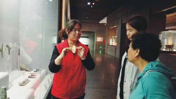 在洛博观众眼中,还有这几位用讲解“道具”加深大家理解的志愿者老师们,他们让进入洛博的观众们更加生动了解文物背后的故事和志愿者精神。