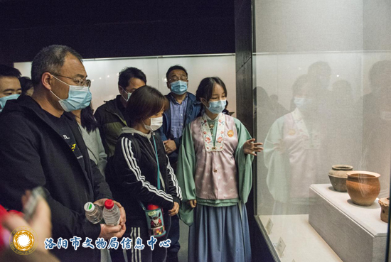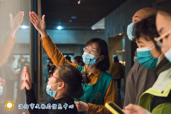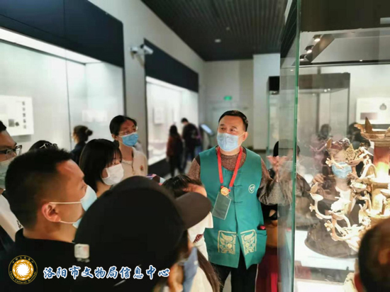 他们中间,人数占了六成以上的,是“退休族”志愿者。他们放弃了安逸悠闲的退休时间,很多老师都是利用接送完孙辈的时间和处理家事的空隙,早早赶到馆里,迎接游客和研学者;各行各业的“上班族”志愿者们,则是在双休日、节假日、调休时间甚至午间休息时间,主动到馆进行“义务劳动”——有时候为了排练“让文物活起来”的历史剧,老师们在晚上下班后也不休息。闭馆了,就自己找场地排练,只为了让观众看到洛博最好的舞台,为了让历史文化的传播更广、更有力量和鲜活深刻。