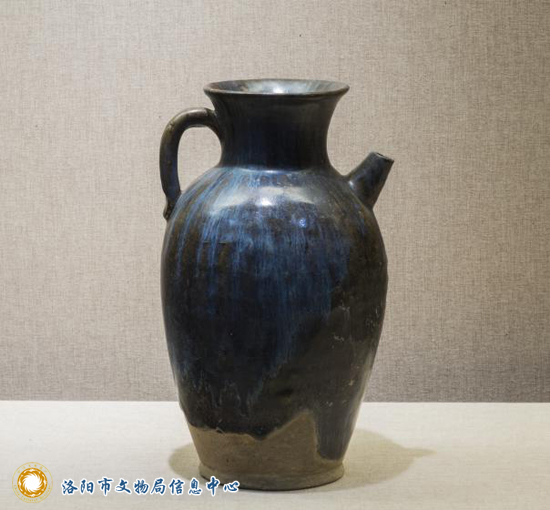 唐·段店窑黑釉蓝斑瓷执壶