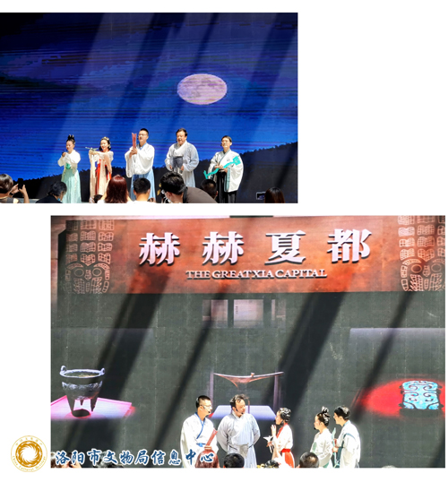 第二个节目是由二里头夏都遗址博物馆的老师们带来的《夏博奇妙夜》,他们通过情景剧的表演真正让绿松石龙形器、乳钉纹铜爵等文物“活”了过来,给观众朋友们亲口讲述属于它们的故事。