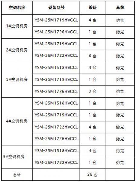 (2)辅楼办公区域采用变频多联系统,室外主机位于辅楼二层楼顶,共14组32台机器,室内机组157台,分布于各个房间,具体设备型号及数量见下表: