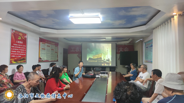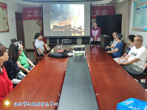 接着由志愿者薛立平老师作为主讲人,他通过幻灯片播放,运用通俗易懂的语言,向社区居民深入浅出地讲解了洛阳博物馆基本陈列“河洛文明”,每到精彩之处,现场便响起热烈掌声。在志愿者老师生动有趣地讲解中,社区居民足不出户,就深入了解了洛阳十三朝古都的历史。
