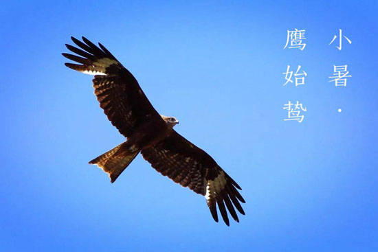 小暑至,表示季夏时节正式开始。《礼记·月令》中记载:“季夏之月……温风始至,蟋蟀居壁,鹰乃学习。”根据元代吴澄撰写的《月令七十二候集解》的注解,小暑时分,温热之风至此而极,蟋蟀羽翼稍成,居于墙罅之中,鸷猛之鸟开始练习搏击,以迎肃杀之气。