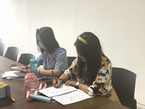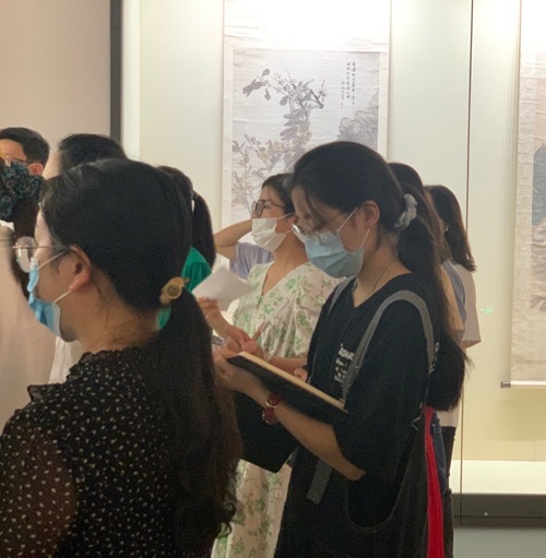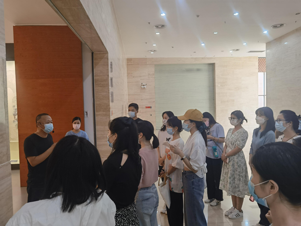 讲解员们为了丰富自身的业务知识素养,更好地服务于观众,他们大量的阅读了专业书籍并摘抄笔记。同时还到展厅内实地的学习和交流文物知识、讲解技巧以及动作神态。此外还特邀吴非老师和胡寅老师亲自为讲解员们培训和讲授书画馆的内容,讲解员们纷纷表示受益匪浅,对日后更好的进行讲解工作大有裨益。