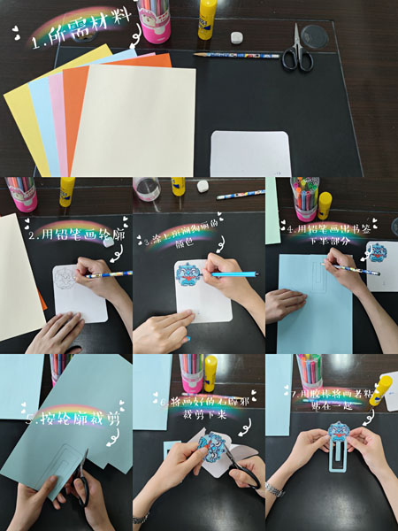 准备材料:各色彩色卡纸、白色硬卡纸、水彩笔、铅笔、橡皮、剪刀、固体胶等