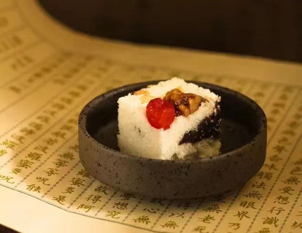 契合“步步高”的美好寓意,我国民间各地还习惯在重阳节这天吃重阳糕。重阳糕又称花糕、菊糕、五色糕。九月九日天明时,人们会以片糕搭儿女头额,口中念念有词,祝愿子女健康平安。古人讲究的重阳糕要作成九层,像座宝塔,上面还做成两只小羊,以符合重阳(羊)之义。“吃糕”意为“登高”,它祝愿每一个小孩百事俱高。