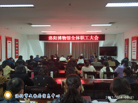 洛阳博物馆讯(供稿:孙梦蝶)2021年11月4日上午,洛阳博物馆召开全体职工大会,传达学习习近平总书记致仰韶文化发现暨中国现代考古学诞生100周年纪念大会上的贺信、省委书记楼阳生在中国共产党河南省第十一次代表大会上的报告精神及洛阳市领导干部会议精神,并开展洛阳博物馆意识形态工作专题培训。党支部书记张孟曾主持会议。