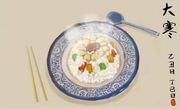 岭南民谚有云:“小寒大寒,无风自寒。”在传统节气中极冷的一天,广东民间形成吃糯米饭的习俗。如今在广东,常见这样的情景:大寒来临前,家家户户煮上一锅香喷喷的糯米饭,拌入腊味、虾米、干鱿鱼、冬菇等,以迎接传统节气中最冷的一天。糯米味甘、性温,食之具有御寒滋补功效。安徽安庆则有大寒炸春卷的习俗。