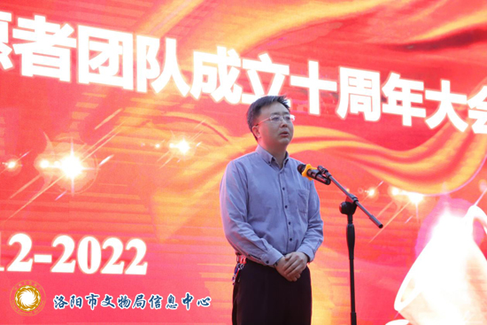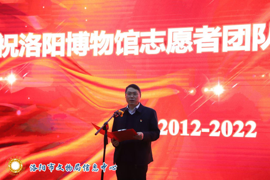 焦元鹏在致辞中表示,希望洛阳博物馆志愿者团队以此次庆祝活动为契机踔厉奋发、笃行不怠,借势全市文物系统“能力作风建设年”活动,继续弘扬志愿服务精神,引导社会力量从“袖手看”到“拍手赞”再到“动手干”,不断壮大志愿服务队伍,继续厚植内功,讲好文物故事,表述好、传递好洛阳优秀历史文化,让更多的公众,尤其是青年朋友们走进洛阳博物馆,感受河洛文明,为洛阳“打造平台型创新城市、创建全国文明典范城市、建设青年友好型城市”贡献力量,再创佳绩。