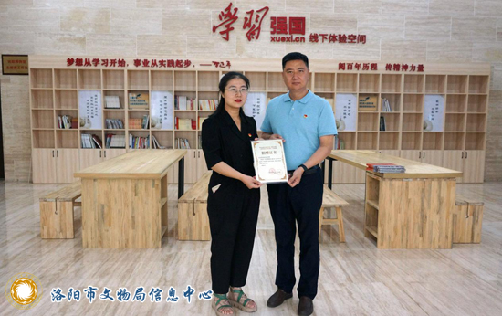 5月31日上午,洛阳日报报业集团整合营销中心副主任刘可可一行来到洛阳博物馆捐赠画册《百年伟业 奋进洛阳》,活动在洛阳博物馆学习强国线下体验空间举行,洛阳博物馆副馆长孙海岩代表博物馆接受捐赠。