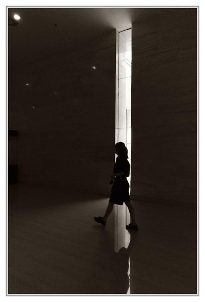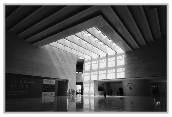 走进洛阳博物馆,长长的走廊、巨大的穹顶、高阔的空间,沉寂的暗影,还有那些耀眼或散漫的光点,营造出博物馆内部氤氲深邃的影调,弥散在博物馆巨大广阔的空间,使人驻足、使人沉浸,使人遐思。