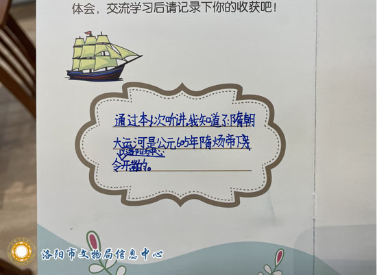 本场活动不但向同学们展现了丰富多彩的运河文化,还增强了同学们对中华文明的深刻理解与认识。洛阳博物馆在今后的工作中将继续发挥好博物馆教育职能,多措并举,使更多的研学活动走出博物馆,走进馆舍与校园,走近更广大的青少年。