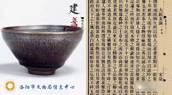 点茶常用的茶碗是福建一带生产的黑色建盏,洛阳博物馆收藏有多件北宋建窑瓷器,节目中也以播放视频和仿制品展示的形式让观众了解了瓷器文物知识。