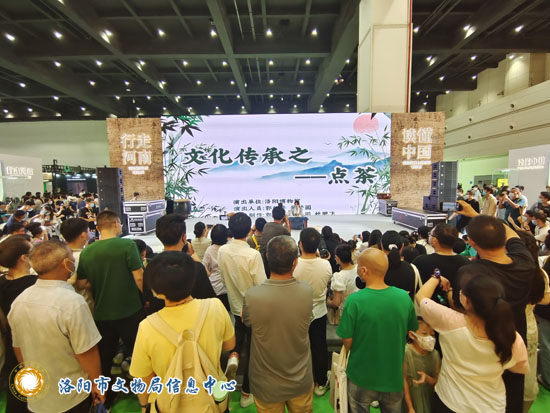 9月3日在博博会河南展区,我馆宣教部成员郭柯辛、裴梦圆精心准备的节目——文化传承之《点茶》引爆现场,两人以情景剧对话的方式开场,再现了宋代市井生活中一对小姐妹焚香、点茶的雅趣活动,让观众在短短几分钟内了解到中国宋代趣味横生的茶文化。