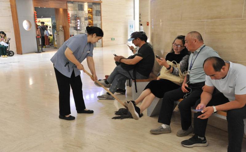 面对急剧增加的观众量,为确保场馆开放期间的全面安全,洛阳博物馆动员所有干部职工放弃节假日休假积极响应号召,深入一线,开展工作。有的协助做好排队疏导、展厅引导、电话咨询等服务,引导观众文明参观,确保观众安全和文物安全;有的进一步加强环境卫生的监督,提升卫生清洁频次,加大新风系统风量,优化空气质量,提升观众参观体验。