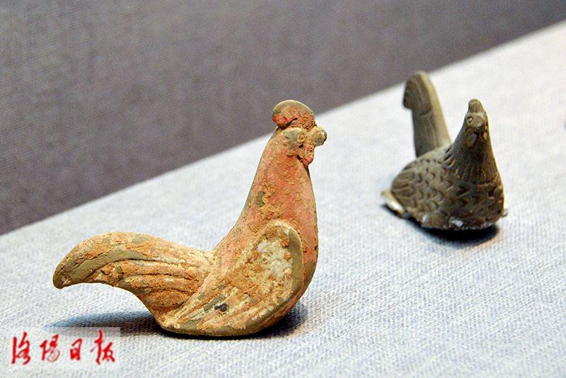 洛阳博物馆展出的鸡主题文物主要分布在第二、第三展厅和汉唐陶俑展厅等,时间跨度从东汉到唐代,主要以陶器、铜器、瓷器为主,还有陶鸡、铜镜、鸡首壶、三彩鸡等一件件文物。此外,龙门博物馆也有两只北魏彩绘鸡,市民可根据记者的介绍去博物馆寻“鸡(吉)”了。
