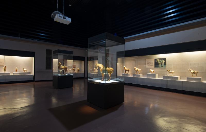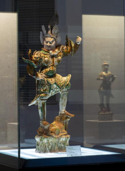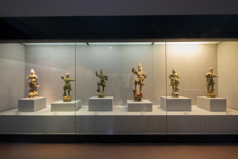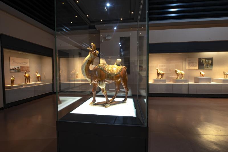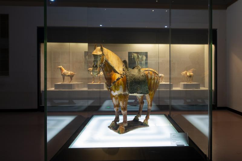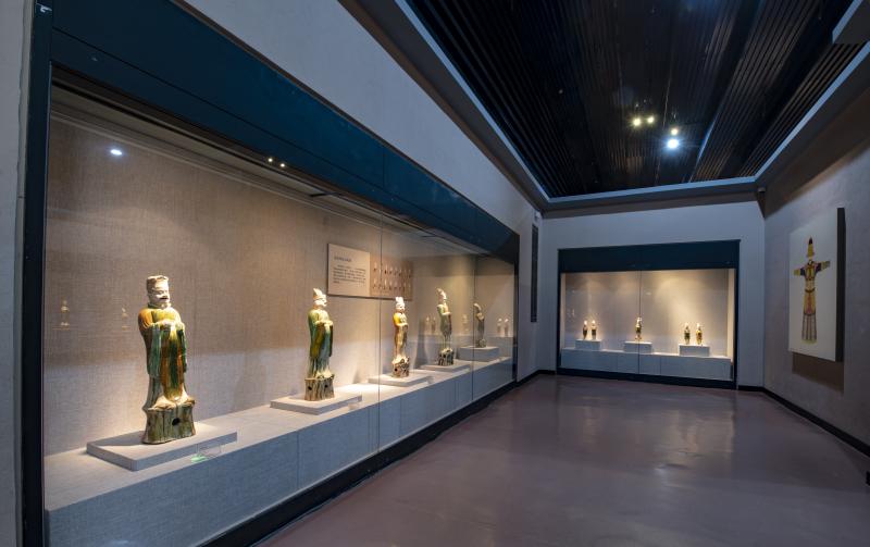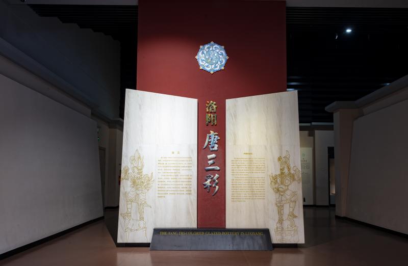 洛阳唐三彩以高1岭土为原料,胎质洁白细腻、器类丰富、造型优美、釉色艳丽,代表了中国多彩釉陶的发展高峰。洛阳唐三彩主要发现于隋唐洛阳城的四周,时代多属武则天至玄宗的盛唐时期,主要作为陪葬明器使用。这些唐三彩包罗万象,绚丽斑斓,从不同维度再现了唐代东都洛阳地区丰富多彩、欣欣向荣的社会生活图景,体现的是一种昂扬进取、开放多元的盛唐气象。