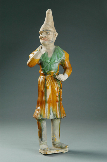 三彩高胡帽男牵马俑
