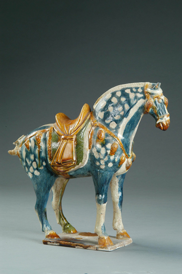 三彩蓝釉白斑马