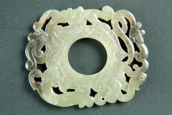 透雕龙凤纹玉佩饰